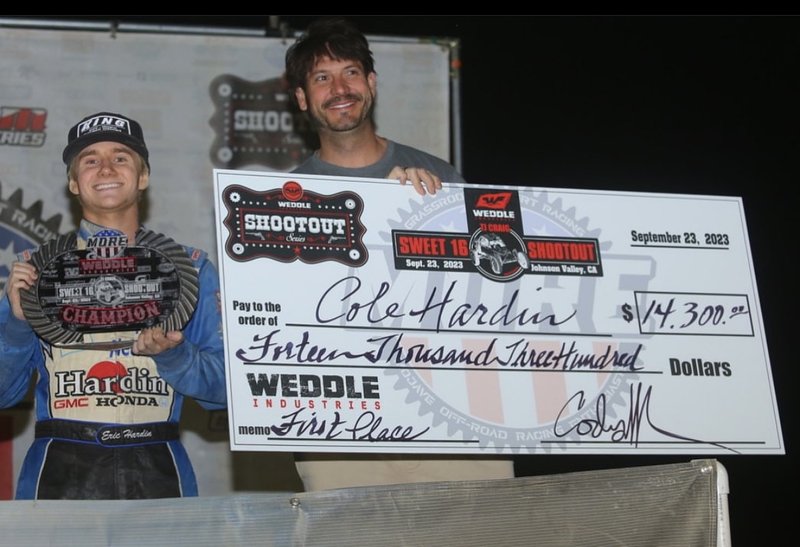 I’m Cole Hardin, nephew of Eric Hardin. Yes my Uncle is very fast and he helps me out a lot but I get a lot of my driving skill from my amazing Mom and Dad. I’m a sophomore at the University of Arizona. I’ve been racing for about 4 years. I just graduated from the 1600 class, winning the 2023 M.O.R.E. Overall Championship, Class Championship, EMPI Triple Crown Championship, and EMPI Triple Crown Team Championship. Last year I raced the Mint in a 16 car and this year I am very excited to race it in a Spec Truck. I truly can’t thank my family enough for allowing me to have this awesome opportunity; and thank them as well as my team for getting my Uncle and I here to compete with the best of the best. This Mint will be my second race in a Spec Truck, hopefully Nick and I can go run down my Uncle.