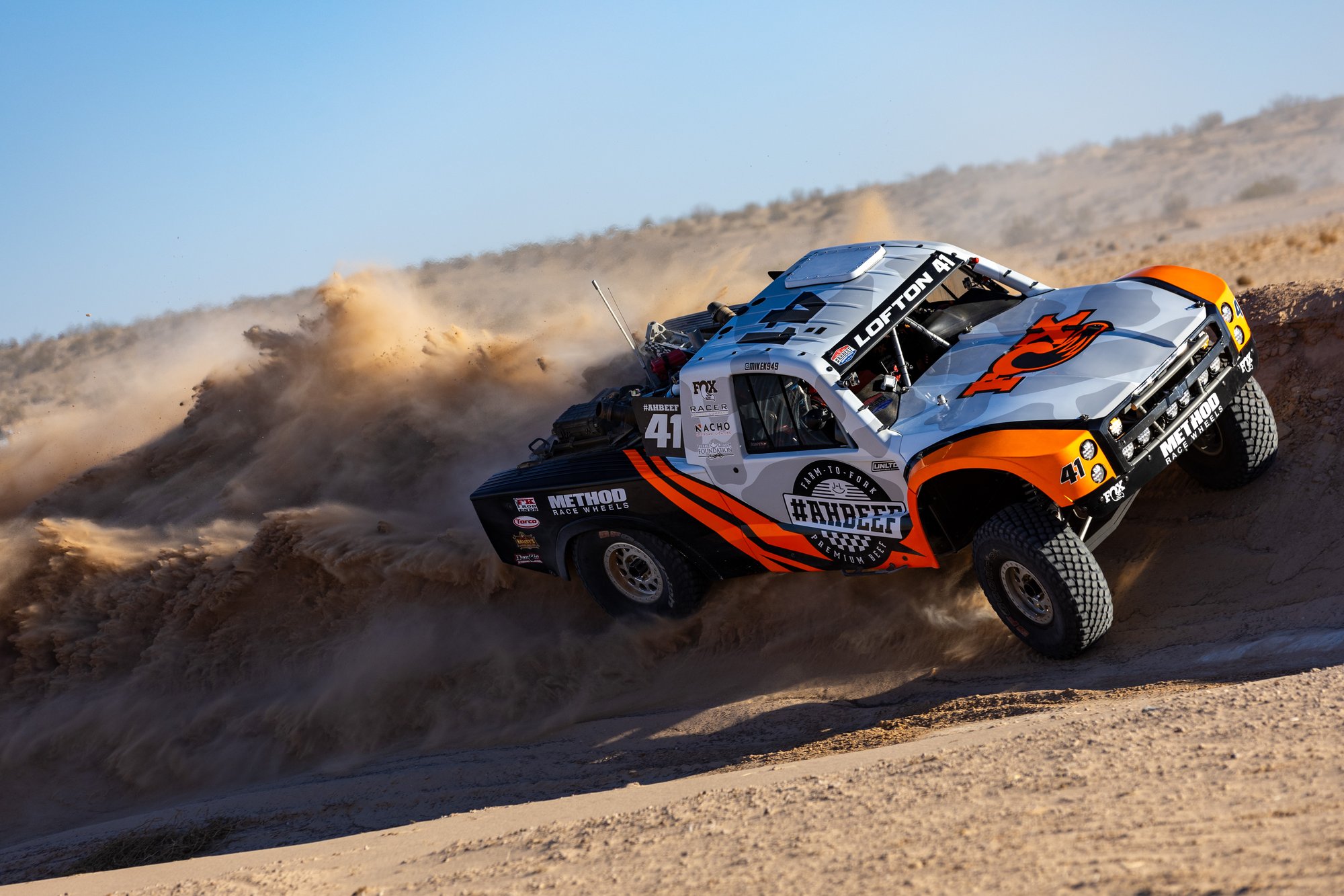 AHBEEF Premium Beef, Fox, Method Race Wheels, RACER Coffee Co, Torco Race Fuels, Danzio, FK Rod Ends, Nacho Off-Road Lights,